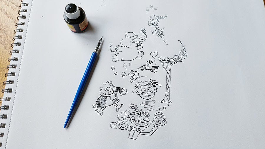 Last week I livestreamed with Jason Chatfield: we talked about the climate for comic artists in Holland and Australia (where Jason’s from), the AI-threat (can’t see AI do a livestream like this - yet!), theology, meditation, a destressing hack I think I discovered; and we doodled.