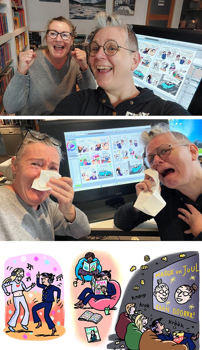 On a less jollier note: fellow artist Juliette de Wit and I finished our very last episode of Ryoko for magazine Tina - the comic is discontinued, alas… We came together in Juliette’s studio to commiserate: