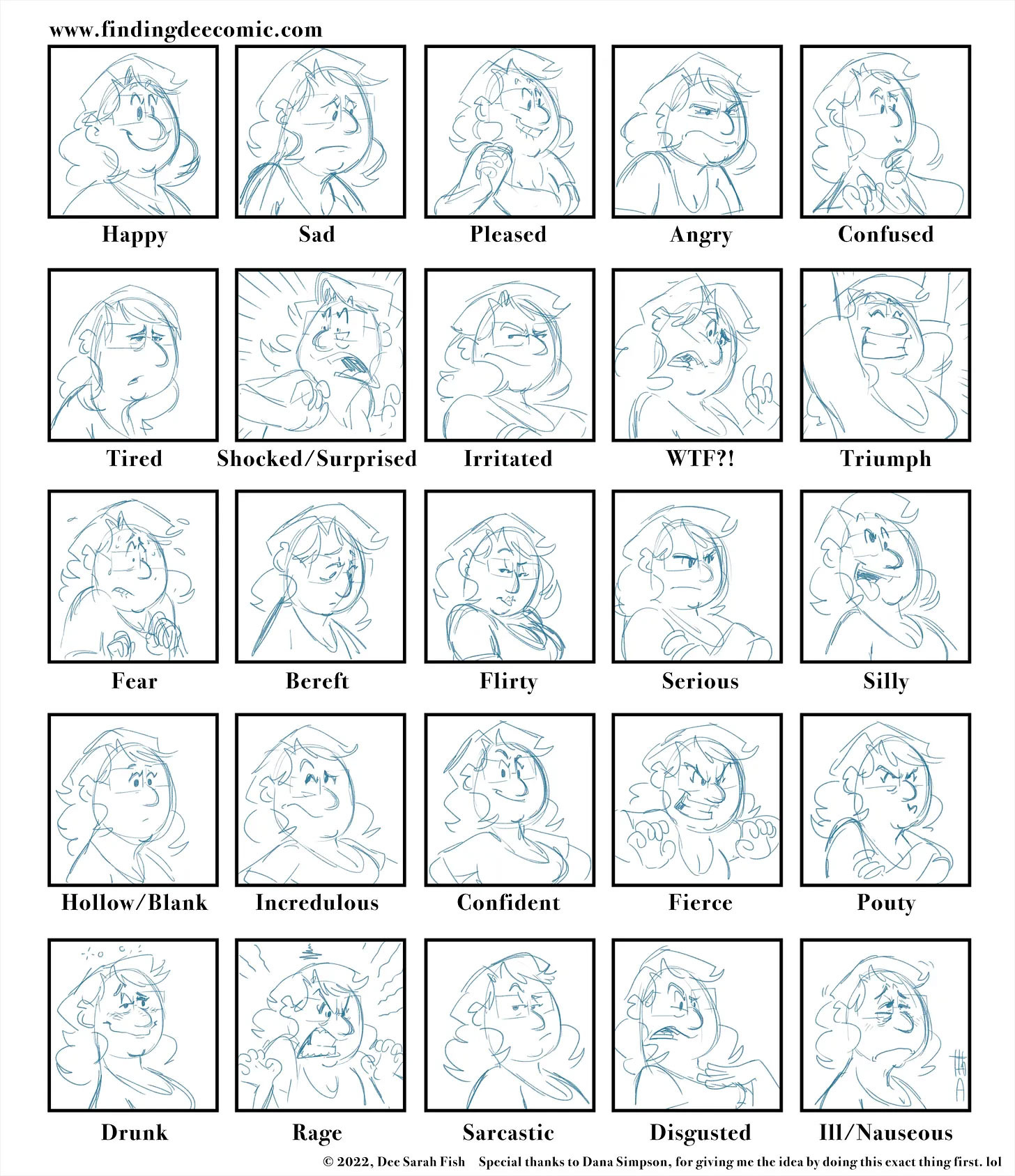 I love the work of Dee Fish, she’s also on Substack and I highly recommend you follow her excellent and funny work. Recently she posted this model sheet of her character: